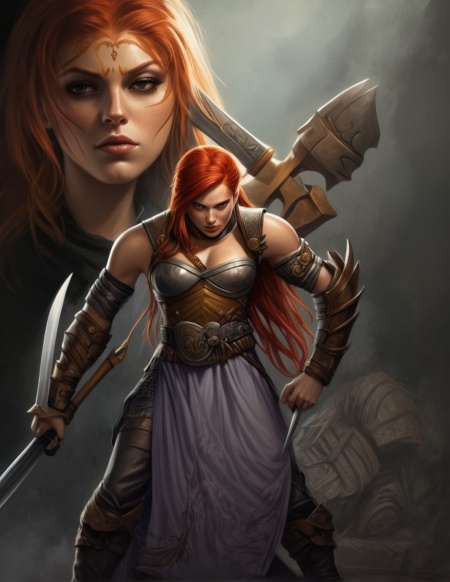 A strong and capable warrior. Striking. Raised by elves but is of dwarven ancestry. Agile but solid. She has an interest in Battust.