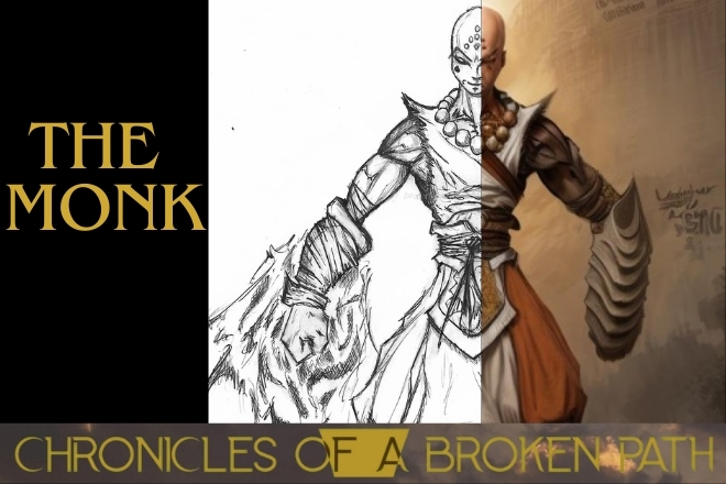 He has spent much of his time in the monastery. His unorthodox beliefs led him to leave it. A warrior monk trained in the ways of bare handed combat. He is an exile that wanders the realm. He is forced into this mission by his vision.